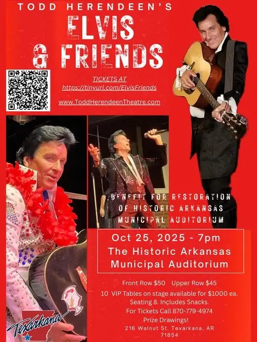 Francine Miller joined the Morning Show to talk about a fundraiser concert coming to the Historic Arkansas Municipal Auditorium in Downtown Texarkana Arkansas. World renowned Todd Herendeen’s Elvis & Friends is happening Saturday night October 25th. Doors